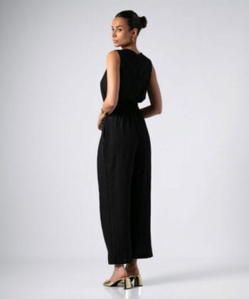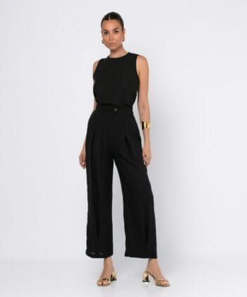 Linen-Style Set Sleeveless Top High Waisted Trousers Black