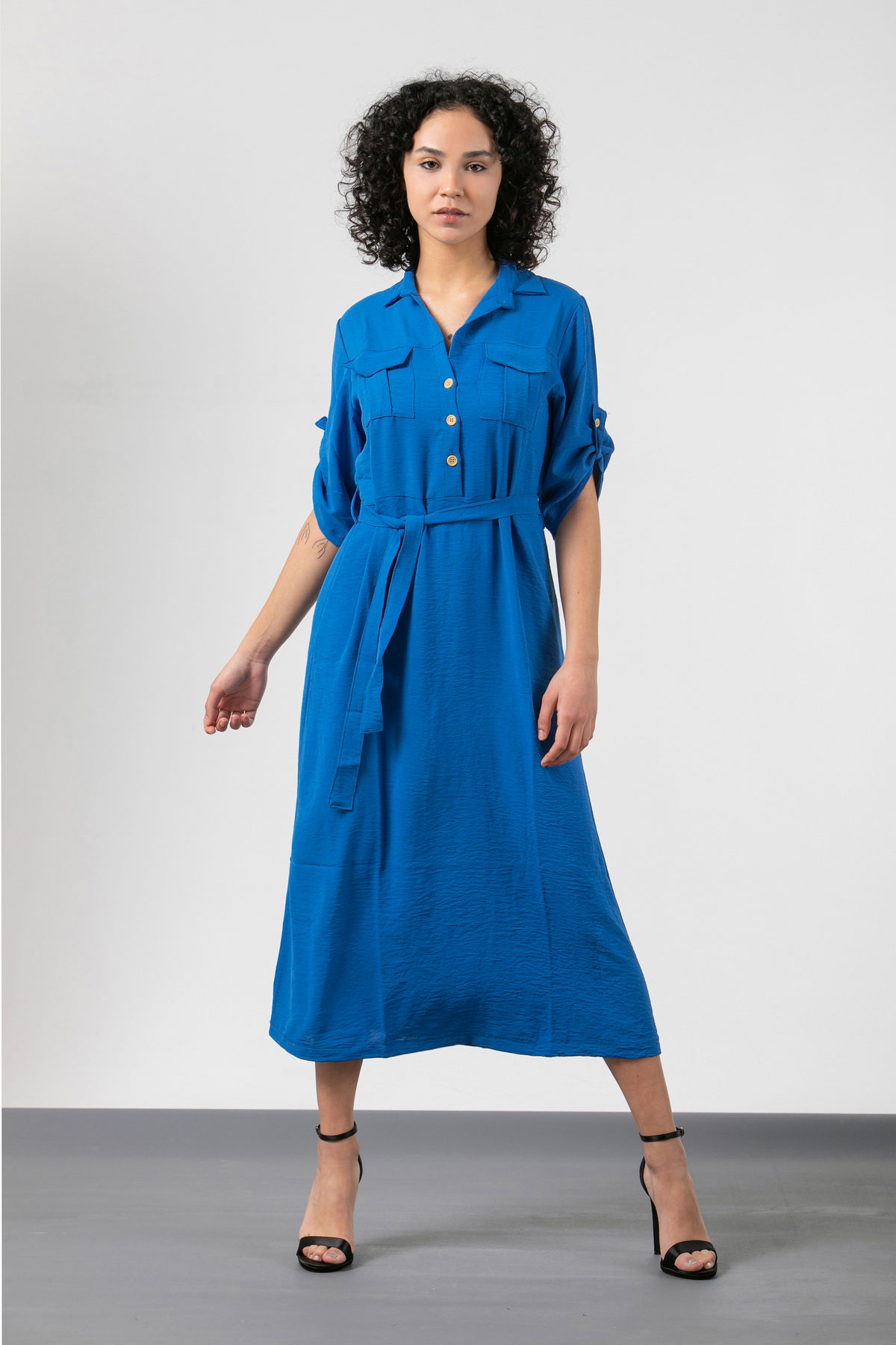 Ανανεώστε το καλοκαιρινό σας στυλ με αυτό το εντυπωσιακό midi φόρεμα σε μπλε χρώμα, ιδανικό για όλες τις ώρες της ημέρας. Το σχέδιο χαρίζει θηλυκότητα, ενώ το κλασικό χρώμα αναδεικνύει τη σιλουέτα σας και προσφέρει ευελιξία στο styling.