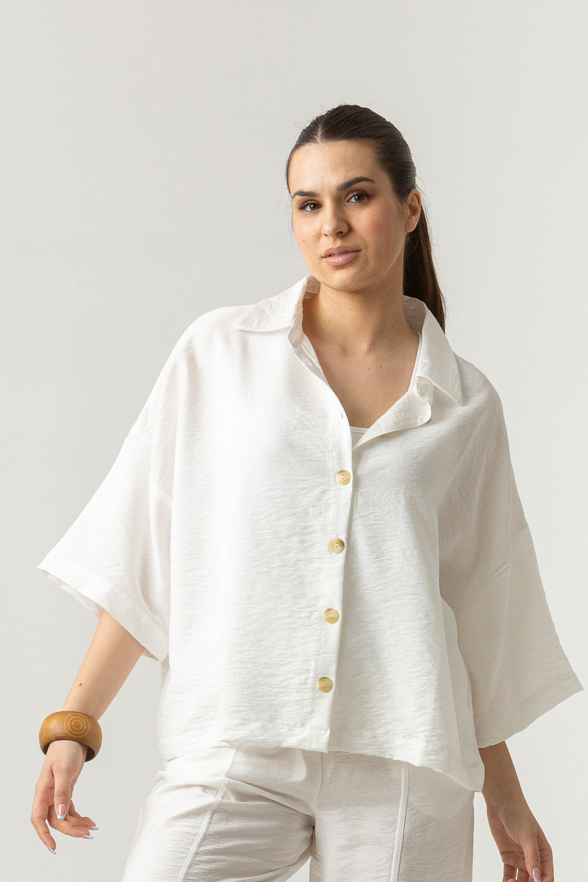Ανανεώστε το καθημερινό σας στυλ με αυτό το γυναικείο λινό πουκάμισο oversized σε διαχρονικό λευκό χρώμα.