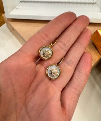 These handmade gold plated hoop earrrings are made of stainless steel and semiprecious stones – mother of pearls