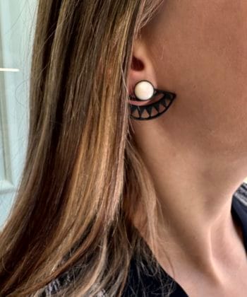 These handmade earrings are made of black plated silver 925 and semiprecious stones sea shell.