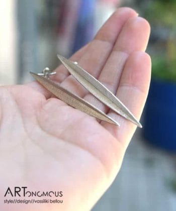 Hand made with silver, the stud earrings are 6.5 cm long.