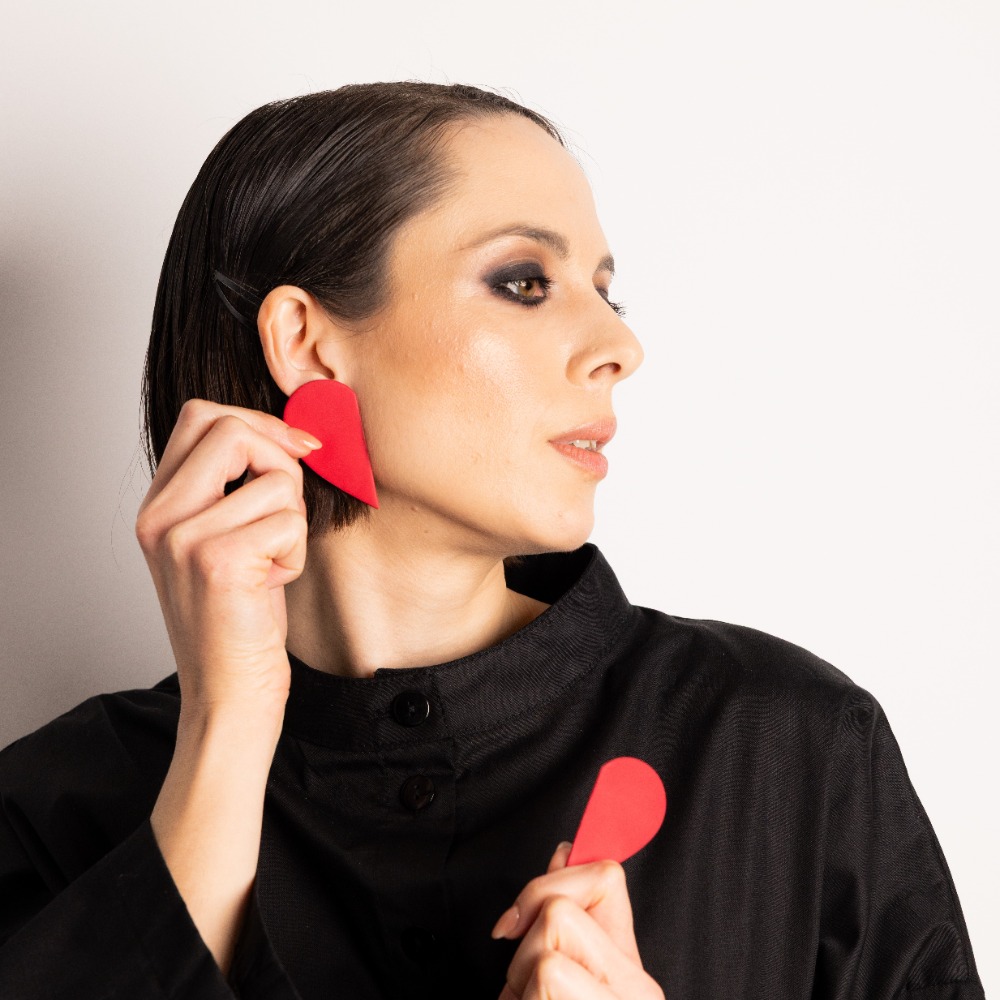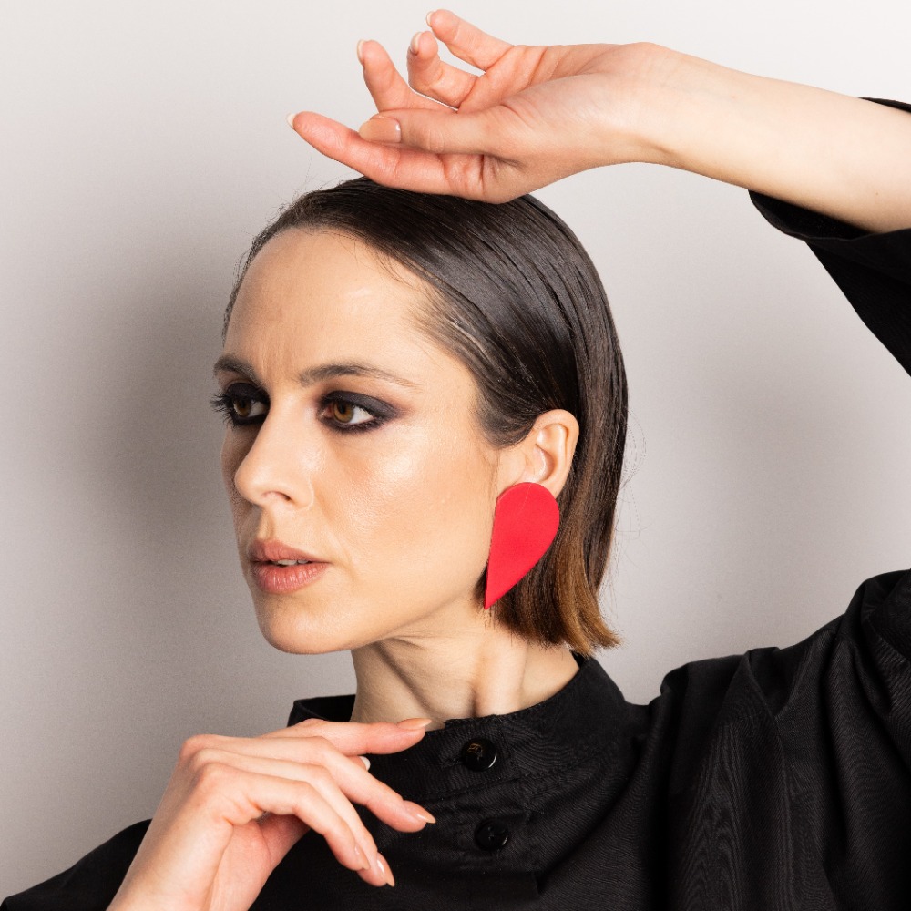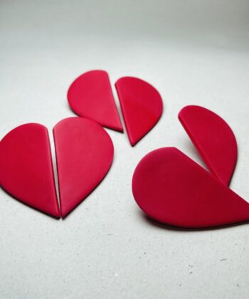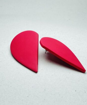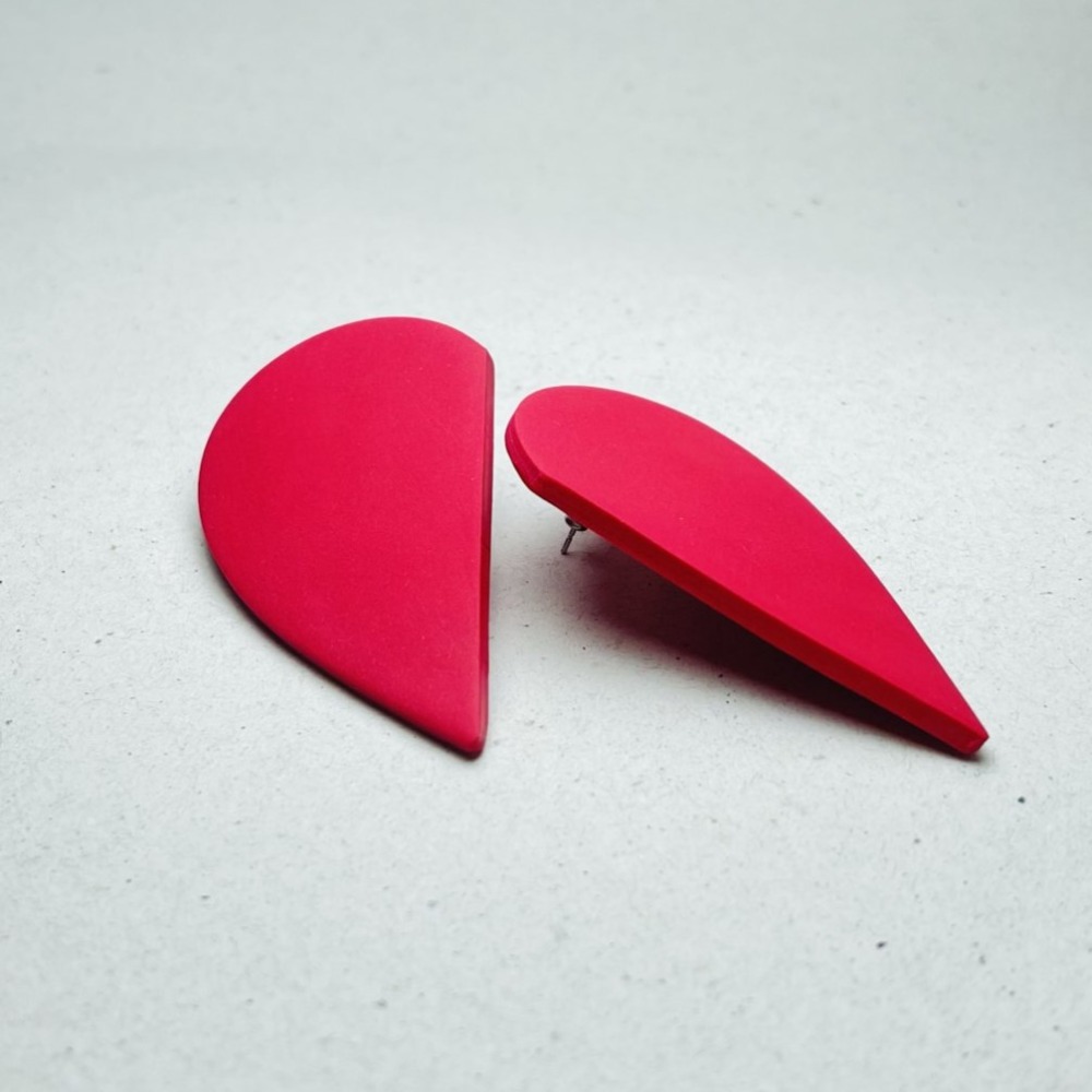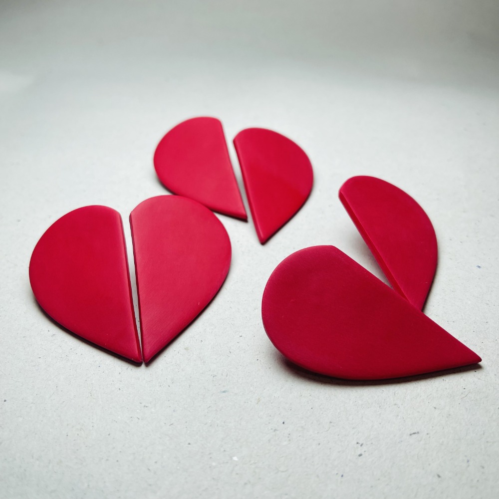 Polymer Clay Earrings Half Heart Red