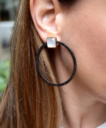 Earrings with circles made of silver with black oxidation and fildisi stone.