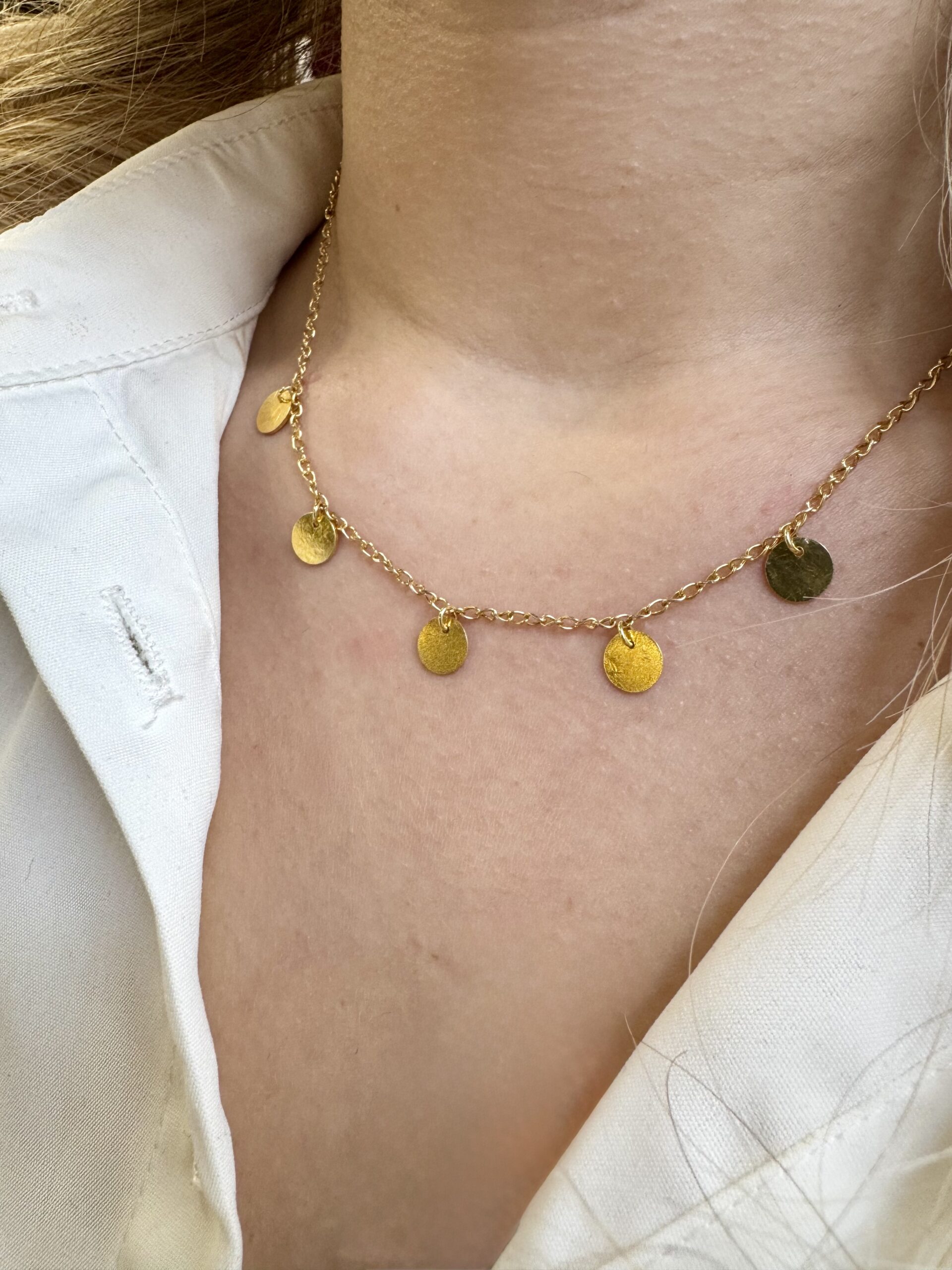 Handcrafted necklace made of 925 sterling silver with gold plating, adorned with small coin charms that add elegance and a modern touch.