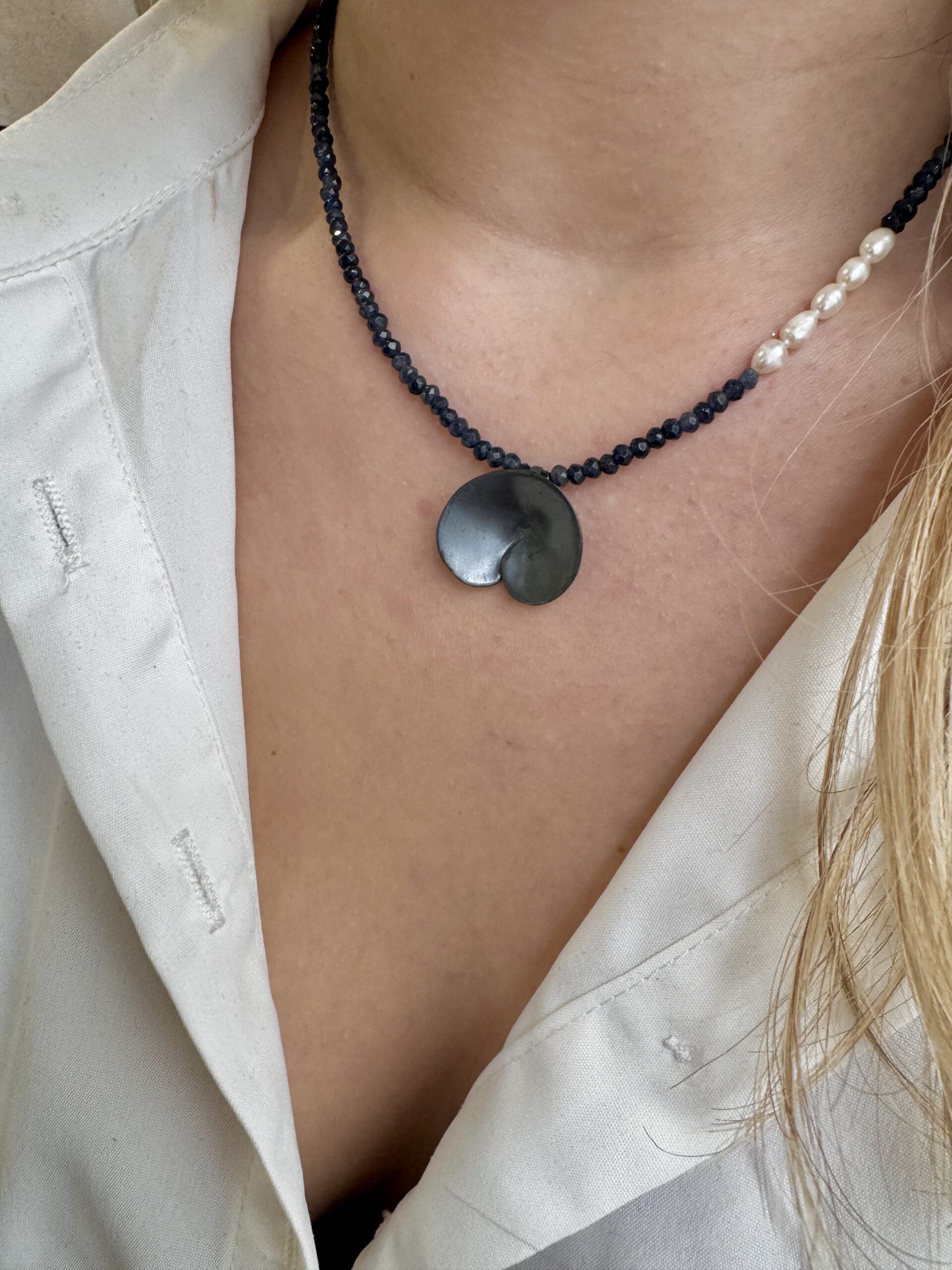 Material: Silver black plated, Semiprecious Stones (Fresh Water Pearls, Jade)