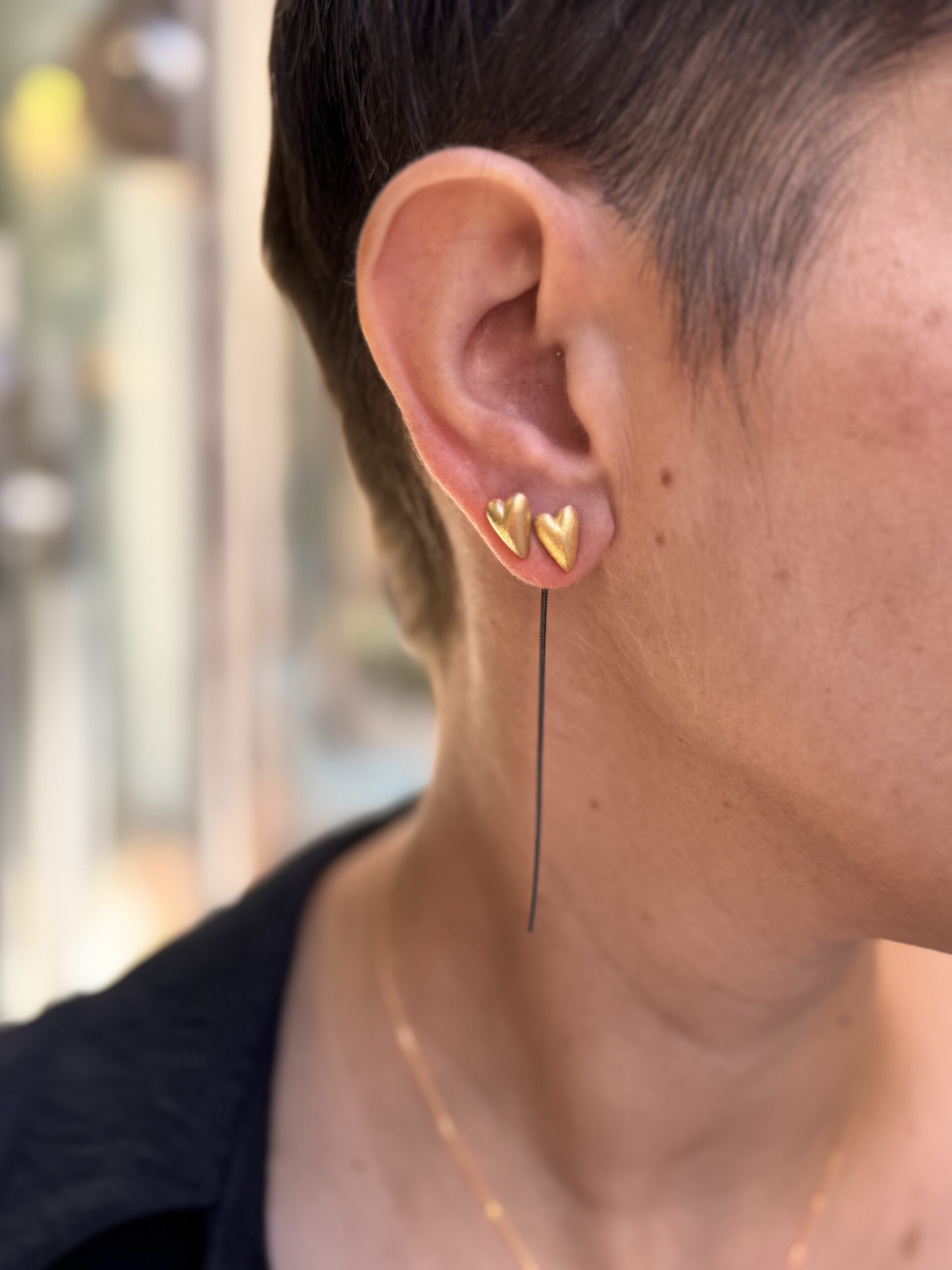 Χειροποίητα σκουλαρίκια από ασήμι 925 με επιχρύσωμα και ασήμι με μαύρη οξείδωση, σε μοναδικό σχέδιο καρδιάς που συνδυάζει ρομαντισμό και μοντέρνα αισθητική. Το μακρύ λεπτό στοιχείο τους δημιουργεί εντυπωσιακή κίνηση και προσθέτει δυναμικό χαρακτήρα σε κάθε εμφάνιση.