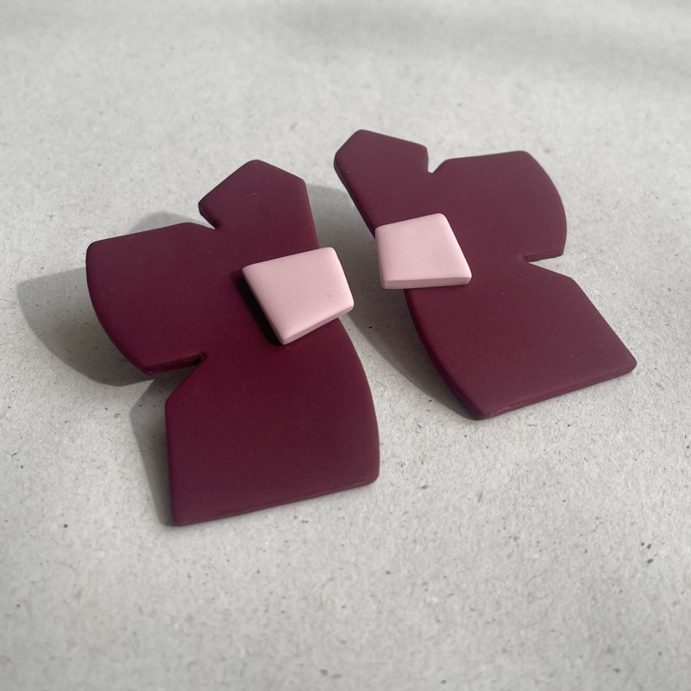 Σκουλαρίκια Πολυμερικός Πηλός Λουλούδι Μπορντό Ροζ 3
