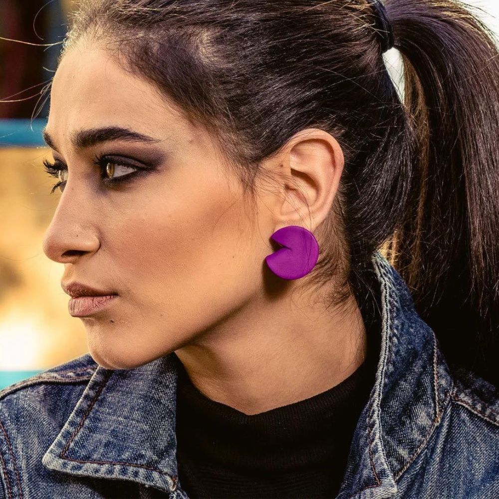Minimal, με pop διάθεση και αναφορές σε retro αισθητική, αυτά τα χειροποίητα σκουλαρίκια από πολυμερικό πηλό ξεχωρίζουν για τον παιχνιδιάρικο χαρακτήρα και τον δυναμισμό τους μέσα από την απλότητα του σχεδιασμού τους.