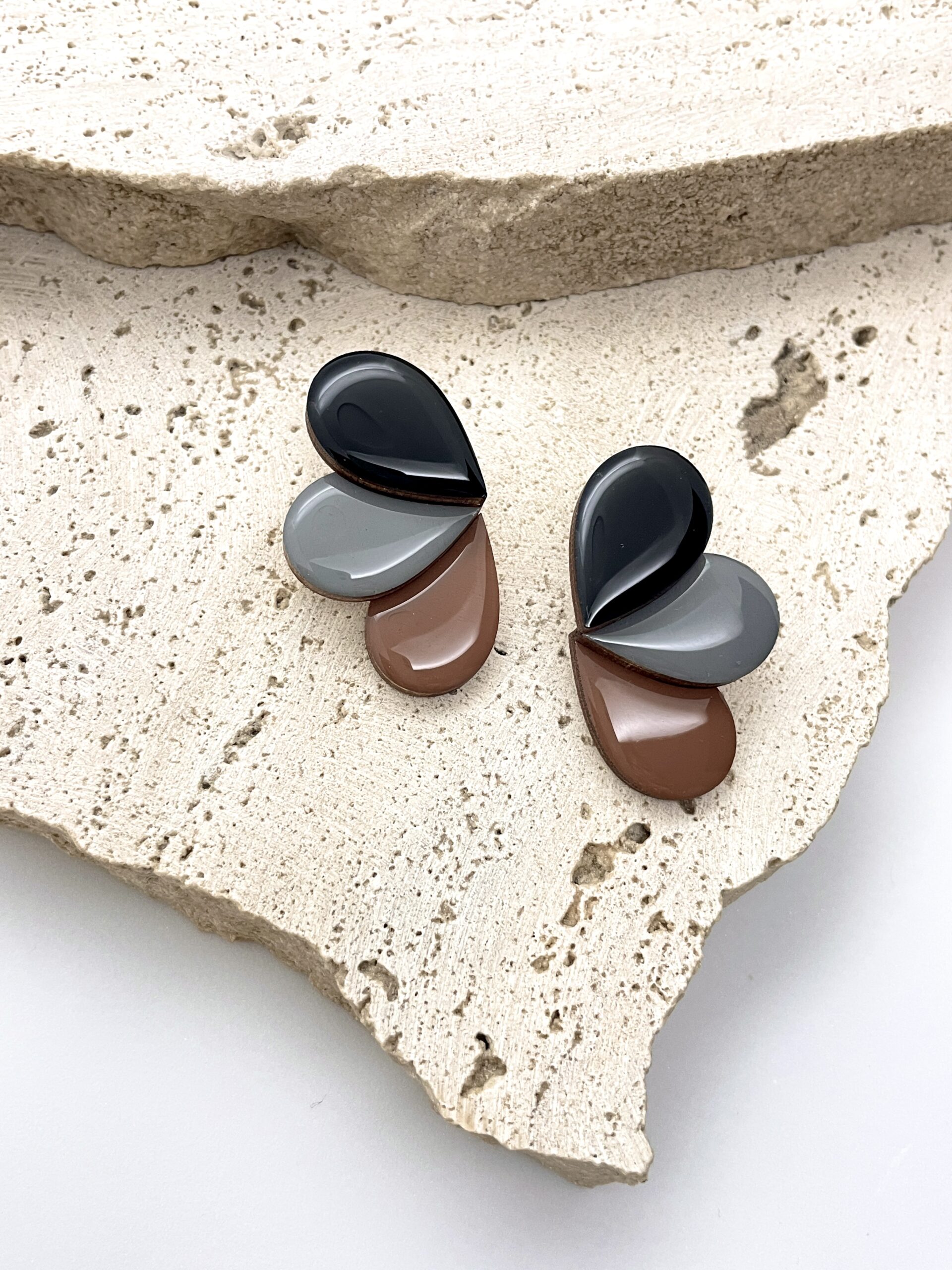 Ξύλινα Σκουλαρίκια 3 Σταγόνες Μαύρο Γκρι Καφέ